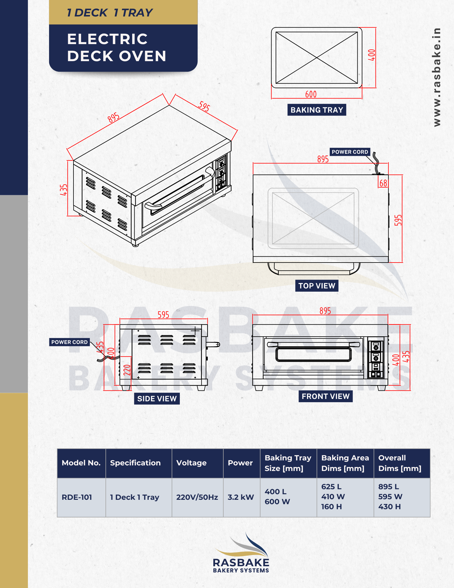 Designed with flexibility in mind, the Rasbake RDE-101 offers multiple configuration options to suit your specific baking needs. This compact yet powerful oven provides the perfect foundation for small to medium-scale operations, with choices that let you customize your baking experience.